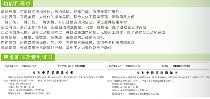 概述:翻轉結構:可翻轉式結構設計,節約運愉、存儲空間,方便安裝和維護 自動清洗:累計工作10H后,設備自動油洗提醒,只需一鍵搞定,整個過程全自動完成